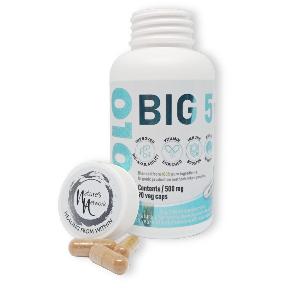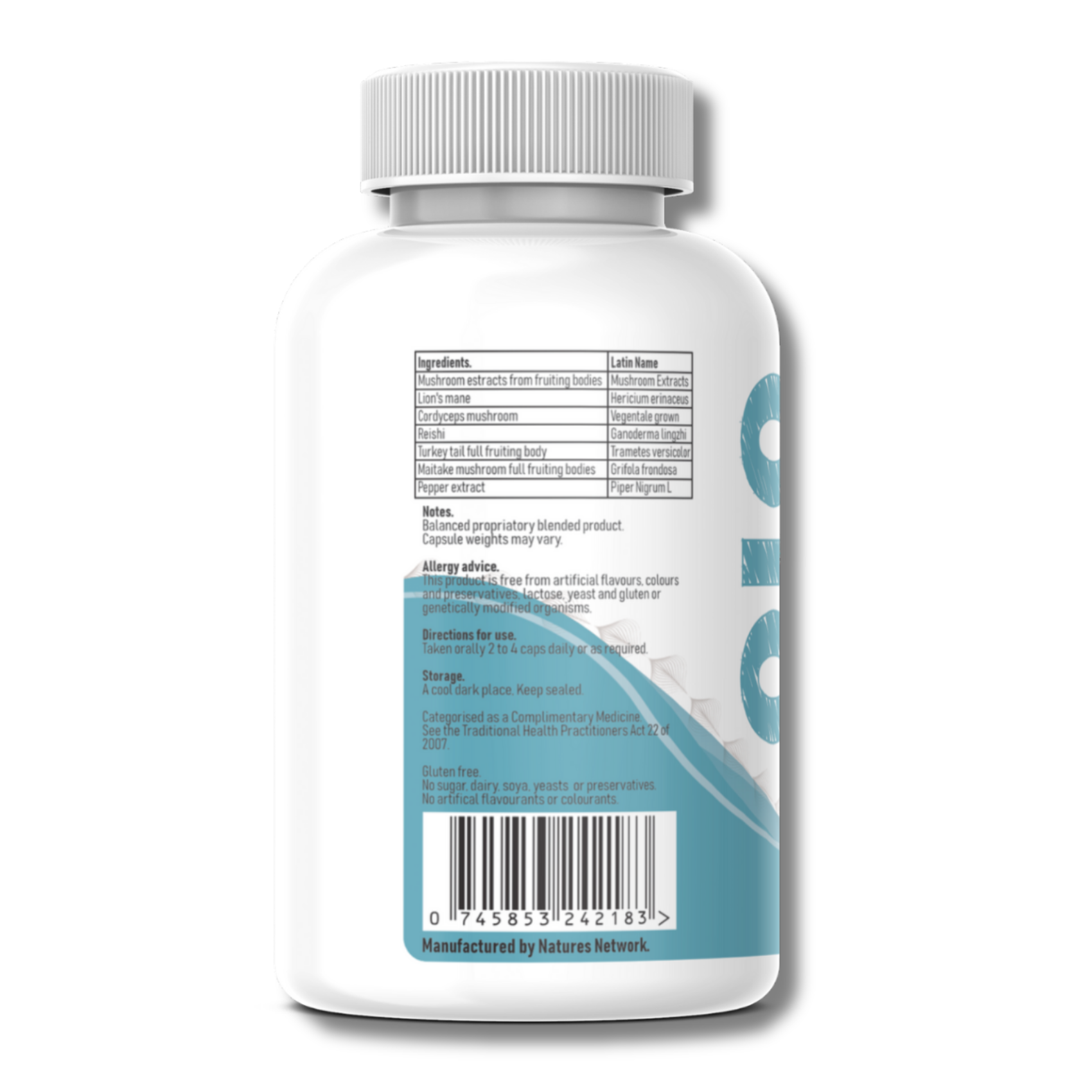 Discover the power of five potent medicinal mushrooms with Natures Network, Big 5 Mushrooms food supplement. This ultra-potent, 100% pure formula is designed to help balance and restore your immune system, protect your brain, heart, and gut, and promote anti-aging effects. Each serving contains 500mg of mushroom extracts from Lion's Mane, Cordyceps, Reishi, Turkey Tail, and Maitake.