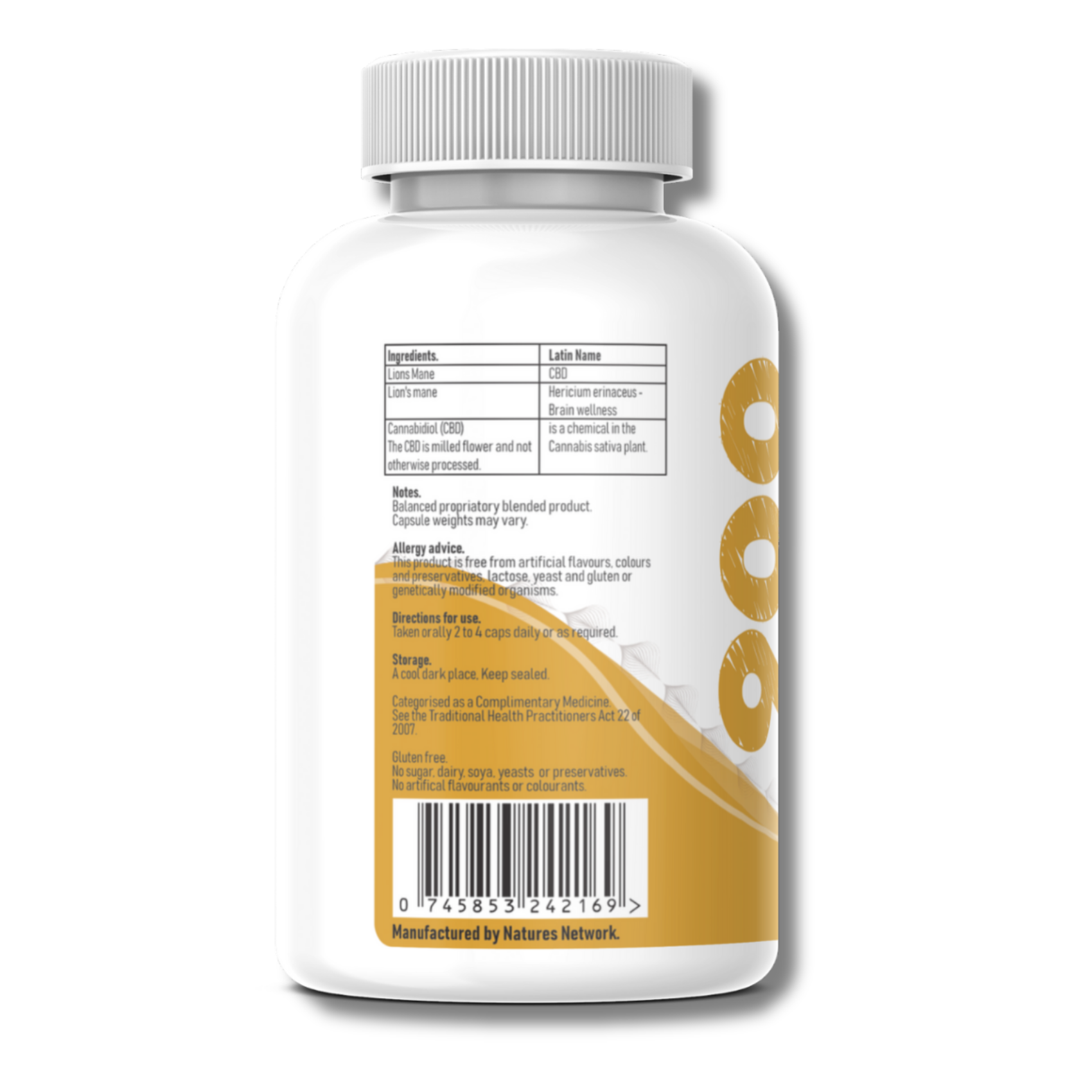 Boost memory, focus, and overall well-being. Elevate cognitive and physical well-being with our Lion's Mane CBD Capsules (90 Vegan caps).